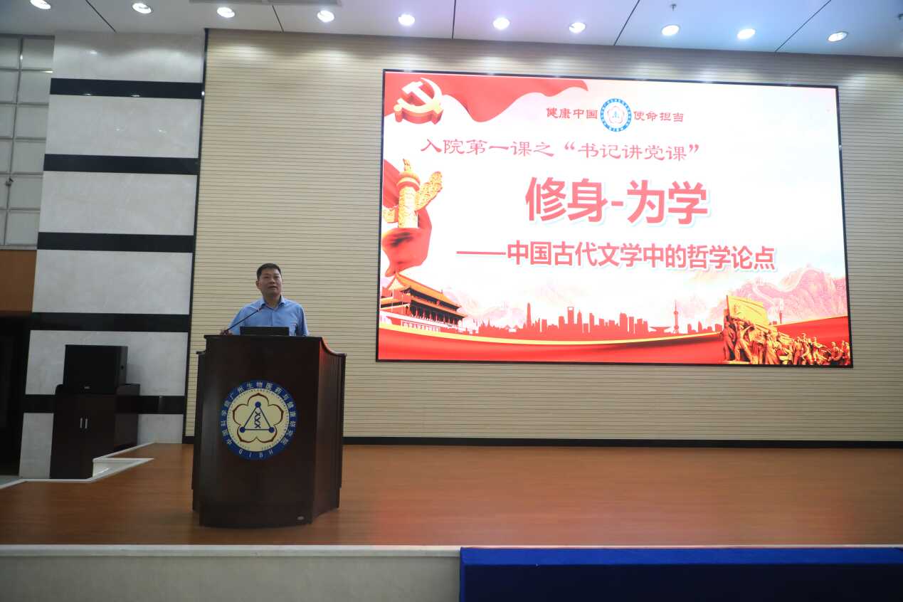 隨后黨委書記、副院長張鴻翔以“修身、為學——中國古代文學中的哲學論點”為題,為同學們講授“入院第一課”。他借中國古典文本中的智慧,深刻闡釋“修身”與“治學”之間的內在聯系與哲學意涵,教導同學們汲取先賢哲思,涵養學術品格,堅定科學報國、科技強國的理想信念,努力成長為有理想、有本領的新時代優秀青年。?