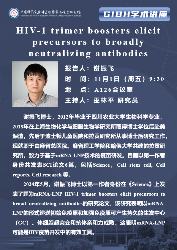 2024年11月1日學術講座:HIV-1 trimer boosters elicit precursors to broadly neutralizing antibodies