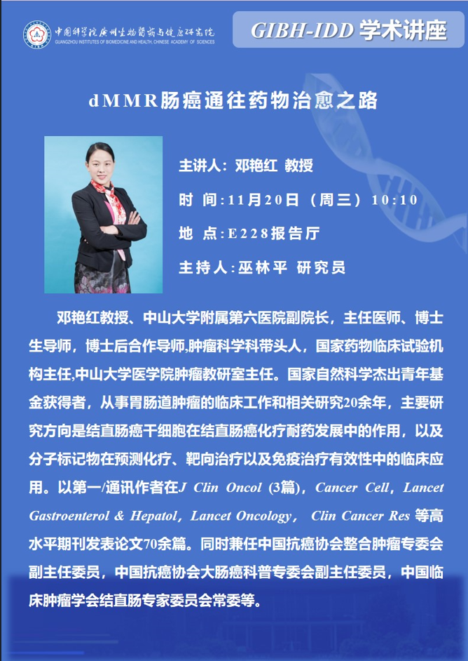 2024年11月20日GIBH-IDD學術講座:dMMR腸癌通往藥物治愈之路