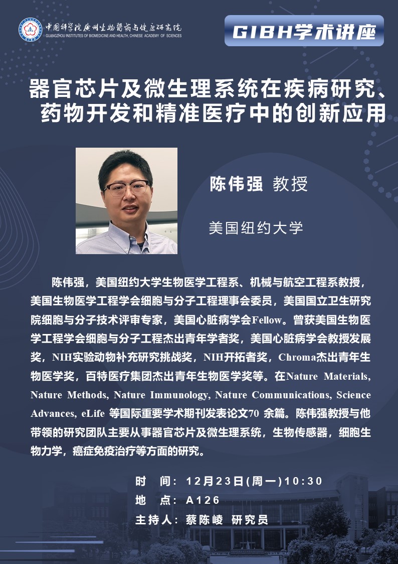 2024年12月23日學術講座:器官芯片及微生理系統在疾病研究、藥物開發和精準醫療中的創新應用