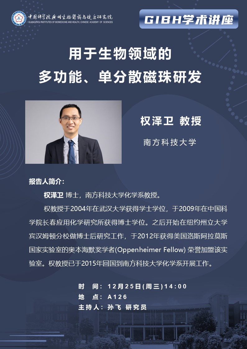 2024年12月25日學術講座:用于生物領域的多功能、單分散磁珠研發