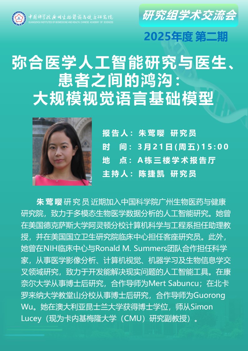 2025年3月21日研究組學術交流會(2025年度第二期):彌合醫學人工智能研究與醫生、患者之間的鴻溝——大規模視覺語言基礎模型
