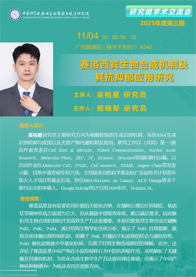 2025年4月11日研究組學(xué)術(shù)交流會(2025年度第三期):賽洛西賓生物合成機制及其抗抑郁應(yīng)用研究