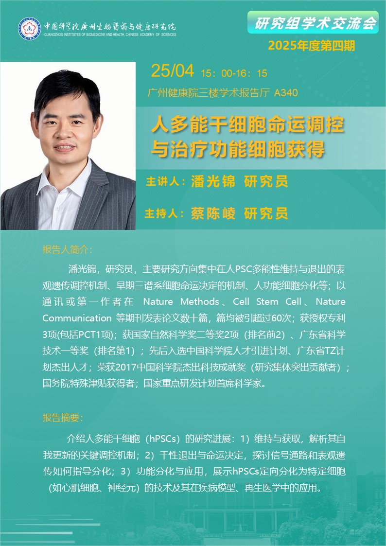 2025年4月25日研究組學術交流會(2025年度第四期):人多能干細胞命運調控與治療功能細胞獲得