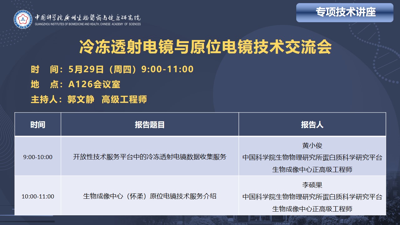 2025年5月29日專項技術講座:冷凍透射電鏡與原位電鏡技術交流會